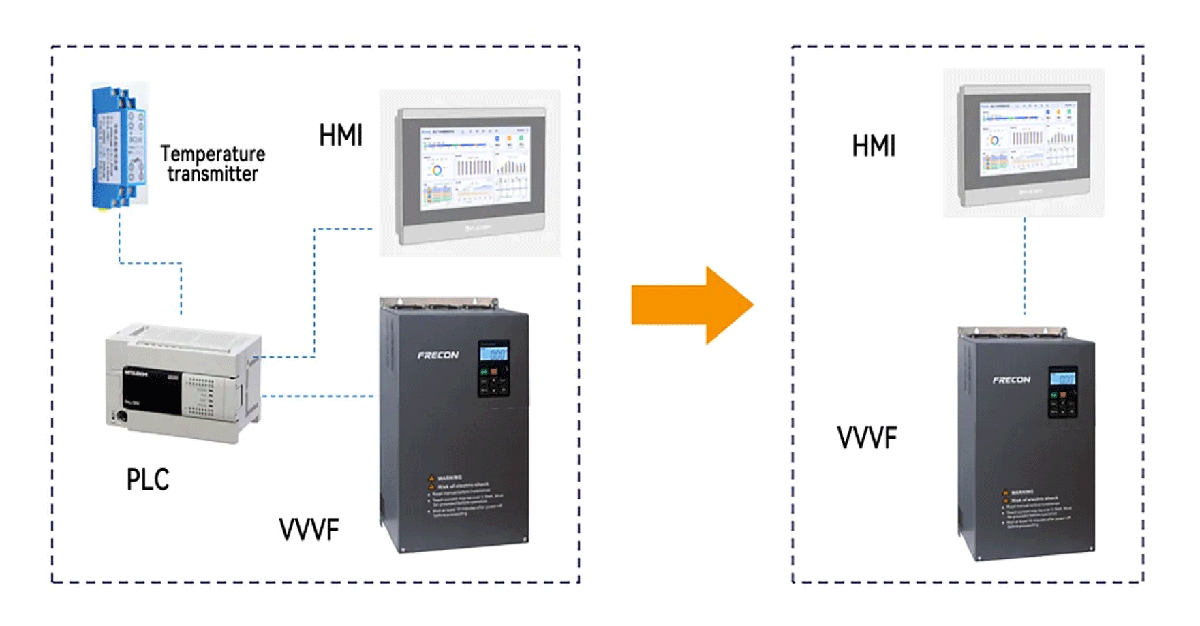 The single-stage vacuum pump, renowned for its structural simplicity, convenient operation and maintenance, and controllable cost, is extensively utilized in industrial applications requiring moderate vacuum levels, such as food packaging, pharmaceutical drying, and building material processing. However, conventional single-stage vacuum pumps with line-frequency control often encounter challenges including limited speed regulation, high no-load energy consumption, and significant mechanical stress during shutdown, making it difficult to meet the energy-saving demands and flexible production requirements of modern enterprises. The FR500A series vector control inverter from FRECON , with its flexible adaptability and reliable performance, presents an ideal solution for upgrading single-stage vacuum pumps, enabling enterprises to reduce operational costs and enhance production efficiency.
