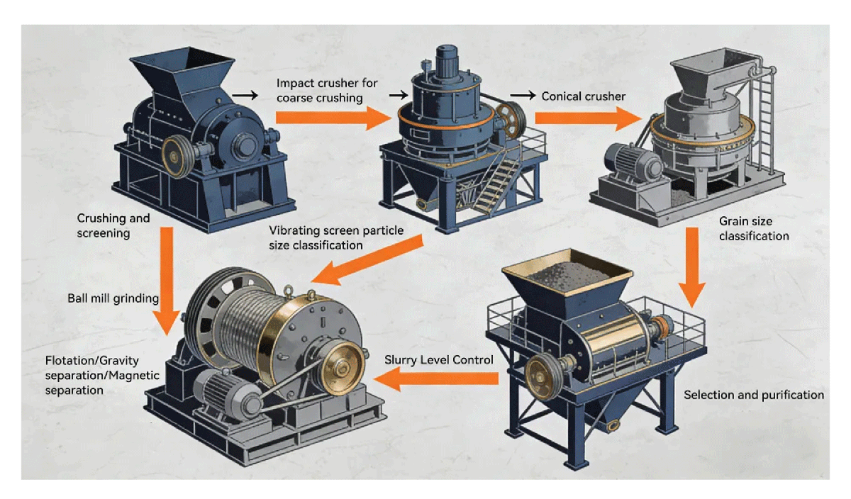 Most ore processing plants use a three-stage crushing process to process iron ore. Metallurgical furnace material companies add a roller press and roller mill process on this basis, which is then connected to the air classification workshop.The core equipment within the air classification facility comprises a multi-stage, series-connected dispersing air classifier (centrifugal impact crusher for material cake dispersion) and a high-capacity system fan. Following classification, the material is separated into three fractions: coarse, medium, and fine particles, with the coarse fraction being returned for reprocessing. The classified ore is then subjected to magnetic and wet separation processes, ultimately yielding a high-grade concentrate. In this circuit, the system fan plays a critical role in ensuring the efficient operation of the beneficiation process.